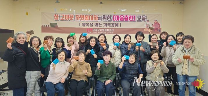 뉴스펀치 조평훈 기자 | 인제군자원봉사센터는 9일 자원봉사자 30명을 대상으로 ‘자원봉사자 마음 충전 교육’ 으로 가죽공예를 진행했다.
