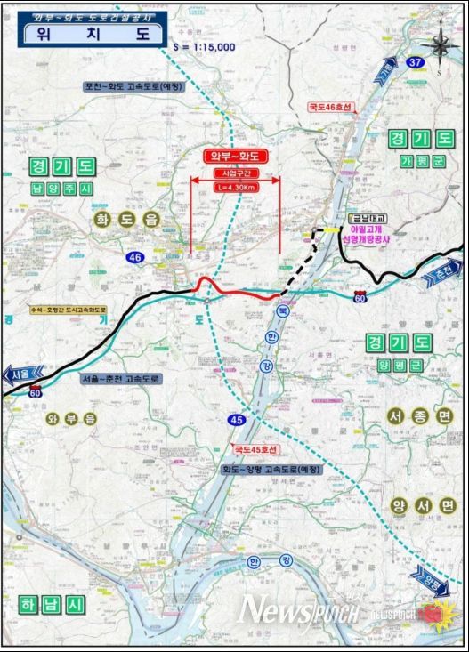 뉴스펀치 박상훈 기자 | 국가지원지방도 86호선 와부~화도 4.3㎞ 구간이 5년 8개월 동안의 공사를 마치고 13일 전격 개통된다.
