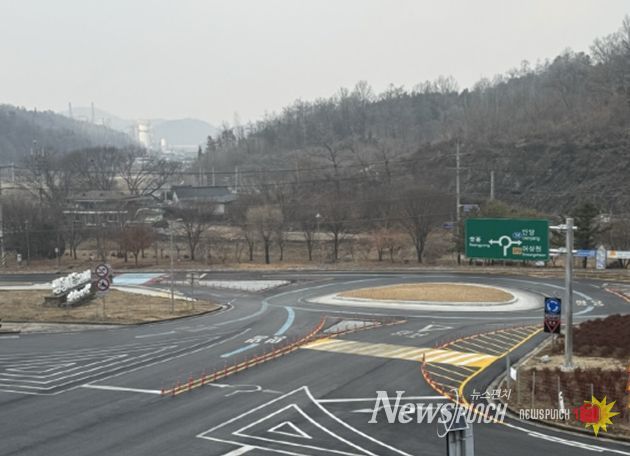 뉴스펀치 조평훈 기자 | 영월군은 한반도면 쌍용리 일원(쌍용2교차로)에 차량 흐름 개선과 교통사고 예방을 위해 회전교차로 설치 공사를 완료했다.