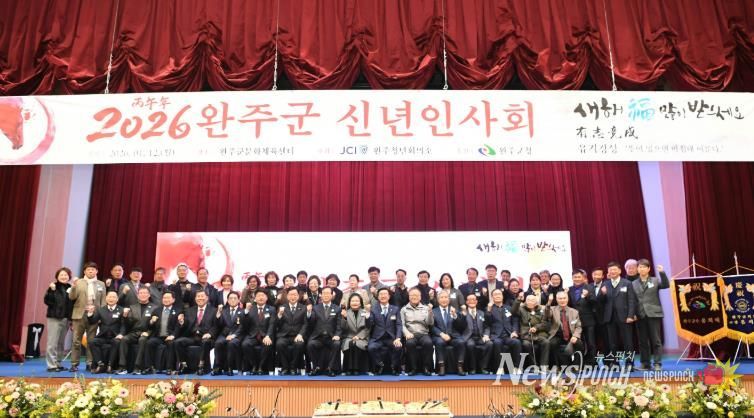 뉴스펀치 정홍균 기자 | 2026년 완주군 신년인사회가 12일 완주문화체육센터에서 완주청년회의소(JCI) 주관으로 열렸다.