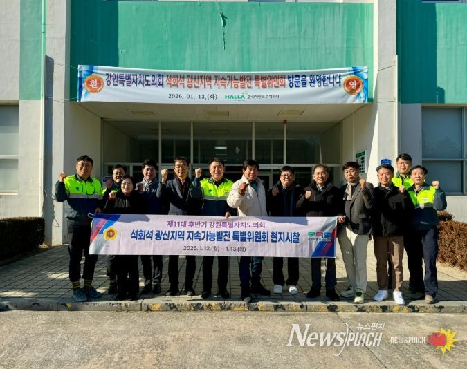 뉴스펀치 조평훈 기자 | 강원특별자치도의회 석회석 광산지역 지속가능발전 특별위원회는 1월 12일부터 13일까지 동해 쌍용씨앤이·삼척 삼표시멘트·강릉 한라시멘트 등 시멘트 산업 및 광산지역 현장을 방문해, 석회석 자원을 기반으로 한 광산지역의 지속가능한 발전 방향과 지역 상생 방안을 점검했다.