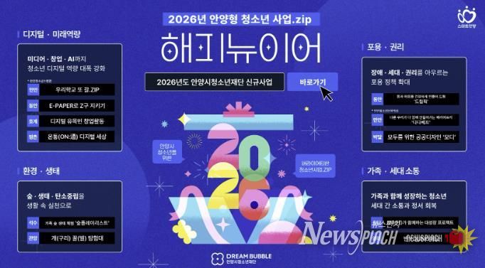 뉴스펀치 박상훈 기자 | 안양시청소년재단은 2026년을 맞아 ‘청소년이 주도하는 변화의 물결, 모두가 함께하는 지속 가능한 미래’라는 비전 아래 10개 소속 기관을 주축으로 신규사업을 본격 추진한다.