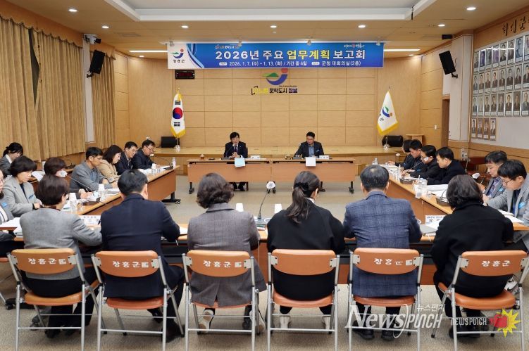 뉴스펀치 김용희 기자 | 장흥군이 지난 7일부터 13일까지 군청 대회의실에서 ‘2026년 주요 업무계획 보고회’를 개최했다고 밝혔다.