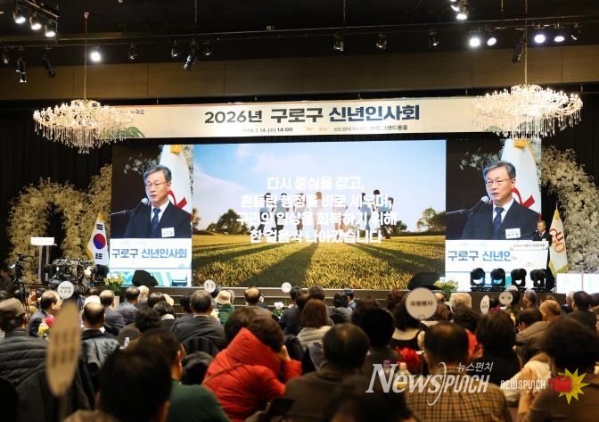 뉴스펀치 박상훈 기자 | 구로구가 14일 오후 2시 신도림 테크노마트 그랜드볼룸에서 ‘2026년 구로구 신년인사회’를 성황리에 마쳤다.
