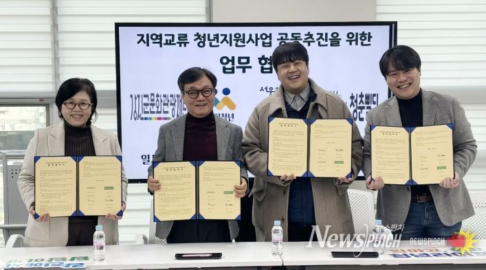 뉴스펀치 김용희 기자 | 강진군문화관광재단이 지난 13일 서울시 관악구청년센터, 금천구청년센터, 강진군청년센터와 ‘지역교류 청년지원사업의 공동 개발 및 운영’을 위한 업무협약(MOU)을 체결했다.
