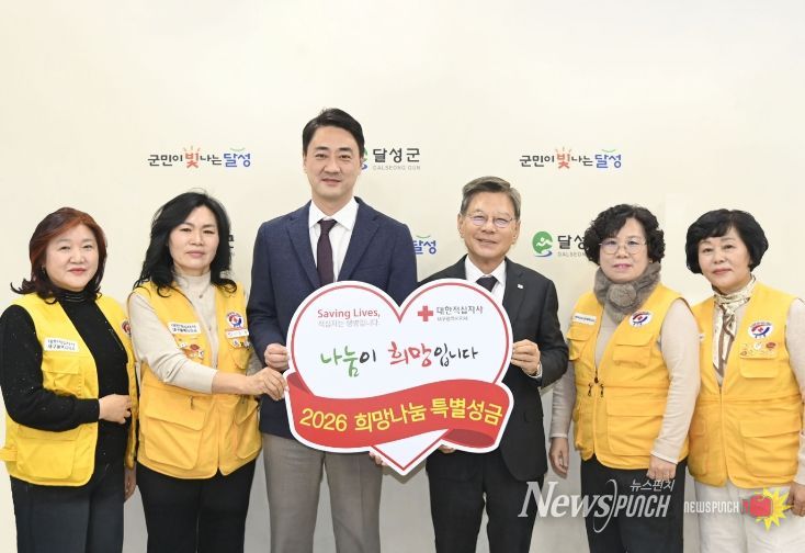 뉴스펀치 조평훈 기자 | 대구 달성군은 지난 15일, 적십자 모금운동에 대한 군민 참여 분위기를 확산하기 위해 대한적십자사 대구지사에 ‘2026년도 적십자 희망나눔 특별성금’ 100만 원을 전달했다.