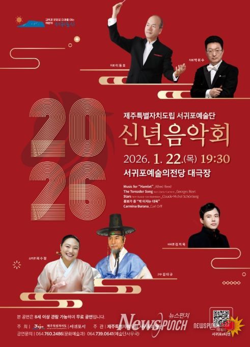 뉴스펀치 김용희 기자 | 서귀포시는 1월 22일 19시 30분 서귀포예술의전당 대극장에서 ‘제주특별자치도립 서귀포예술단 2026 신년음악회’를 개최한다.