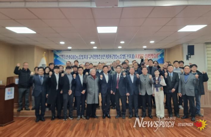 뉴스펀치 조평훈 기자 | 농림축산식품부와 평창군, 지역 농업인과 전문가들이 참여한 ‘평창 친환경 특성화농업지구 조성 관련 현장의견 수렴 행사’가 1월 15일, 평창군 용평면 장평리 소재 금송회관에서 열렸다.