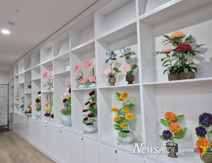 뉴스펀치 조평훈 기자 | 꿈빛마루도서관은 강원특별자치도 무형유산으로 지정된 삼화사지화장엄 지화(紙花) 전시회를 개최한다.