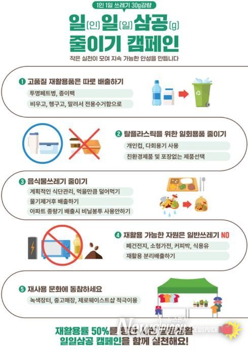 뉴스펀치 박상훈 기자 | 안성시는 시민의 자발적인 실천을 통해 재활용률을 높이고 생활쓰레기 발생량을 줄이기 위한 ‘1인 1일 쓰레기 30그램 줄이기(일일삼공) 캠페인’을 적극 추진하고 있다고 밝혔다.