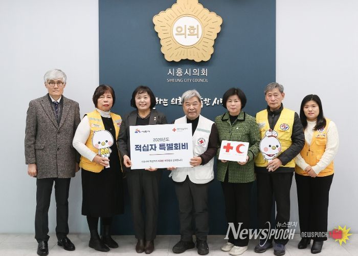 뉴스펀치 박상훈 기자 | 시흥시의회가 1월 16일 의장실에서 대한적십자사 경기도지사에 2026년도 적십자 특별회비를 전달하며 지역사회 공헌 활동을 이어갔다.