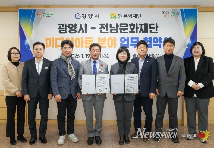 뉴스펀치 김용희 기자 | 광양시는 지난 1월 19일 광양시청 만남실에서 전라남도문화재단과 미디어아트 기반 문화예술 협력을 위한 업무협약을 체결했다고 밝혔다.