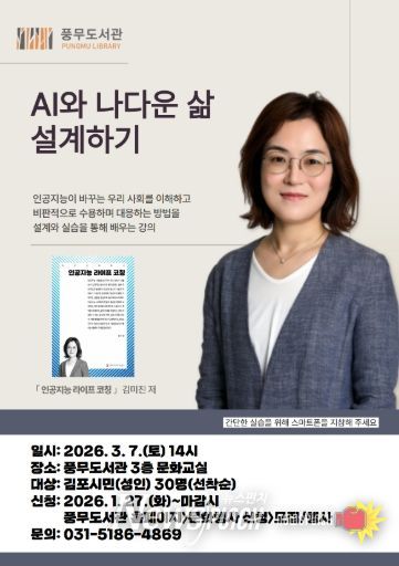 뉴스펀치 박상훈 기자 | 김포시 풍무도서관에서는 김포시민을 대상으로 ‘AI와 나다운 삶 설계하기’를 오는 3월 7일 오후 2시부터 4시까지 운영한다.