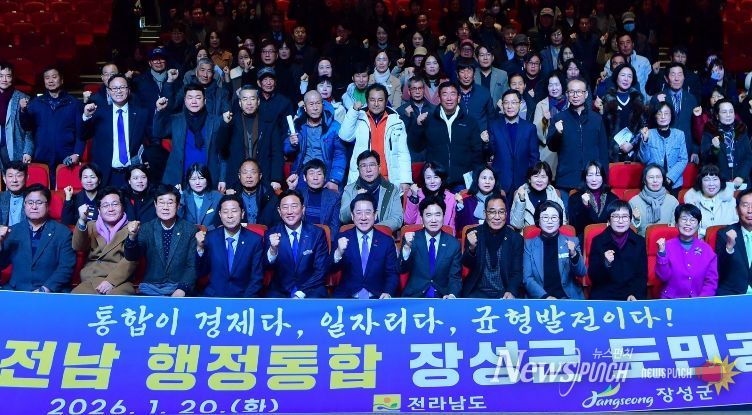 뉴스펀치 김용희 기자 | 20일 장성문화예술회관 대공연장에서 ‘광주·전남 행정통합 장성군 도민공청회’가 열렸다. 군민과 언론인, 공직자 등 700여 명이 참석해 지역민의 뜨거운 관심을 대변했다. 김한종 장성군수는 “전남도와 함께 행정통합시대에 걸맞은 정책과 기반을 잘 준비하겠다”면서 “원활하게 추진될 수 있도록 힘을 모아 주시기 바란다”고 당부했다.