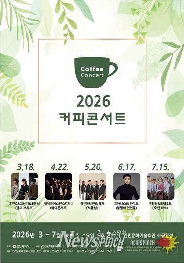 뉴스펀치 정홍균 기자 | 인천문화예술회관(관장 홍순미)이 간판 브랜드 공연 〈커피콘서트'의 2026년 상반기 출연진을 공개한다.