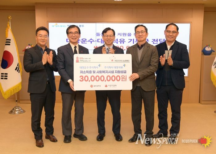 뉴스펀치 김용희 기자 | 광주지역 중견기업인 대창운수와 대창석유가 광주시에 이웃돕기 성금 3000만원을 전달했다.
