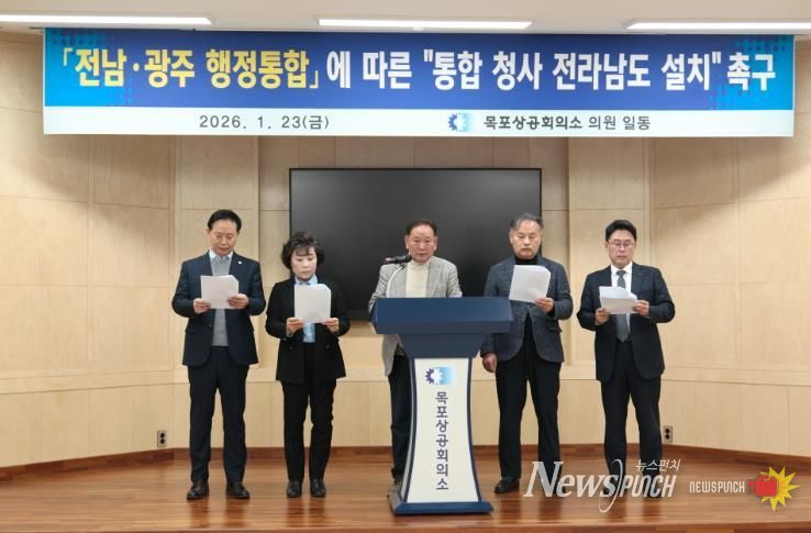 뉴스펀치 김용희 기자 | 목포상공회의소는 전남·광주 행정통합을 위한 특별법 입법을 앞두고 있는 가운데, 지난 23일 통합 특별시 청사를 전라남도청에 설치해야 한다며 이를 강력히 촉구하고 나섰다.