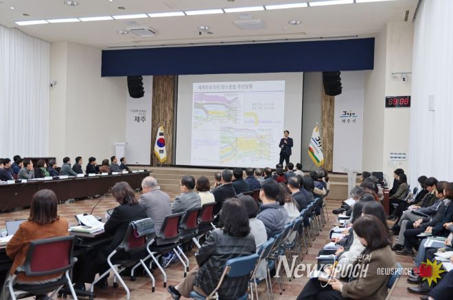 뉴스펀치 김용희 기자 | 제주시는 1월 23일 시청 1별관 회의실에서 열린 ‘2월 시정시책공유 간부회의’에 김영환 도 에너지특보를 초청해 ‘분산에너지 전환’ 정책을 청취하는 시간을 가졌다.