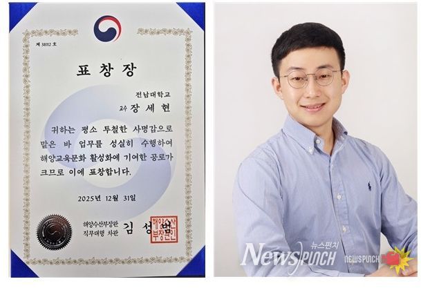 뉴스펀치 김용희 기자 | 전남대학교 지구환경과학부 해양학과 장세현 교수가 차세대 인재를 대상으로 한 해양교육과 해양문화 확산에 기여한 공로를 인정받아 해양수산부 장관 표창을 수상했다.