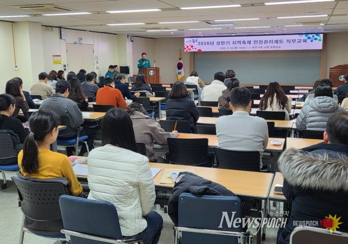 뉴스펀치 이현승 기자 | 충주시는 지역축제 및 행사 담당 공무원을 대상으로‘2026년 상반기 안전관리제도 직무교육’을 실시했다고 26일 밝혔다.