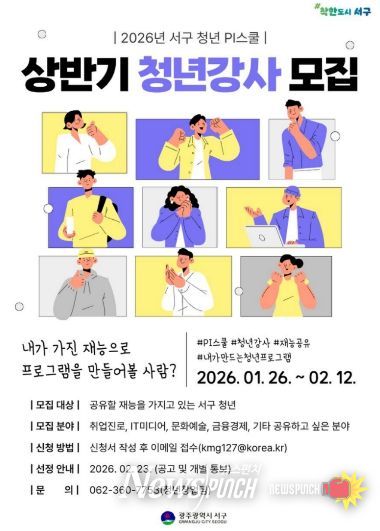 뉴스펀치 김용희 기자 | 광주광역시 서구는 청년들이 강의 기획부터 운영까지 직접 참여하는 ‘재능공유 청년강사’ 사업을 본격 추진한다.