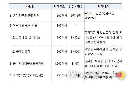이번 사업의 총 지원 규모는 141억 7천만 원이며, 주요 지원 프로그램은 ①온라인 판로지원, ②오프라인 판로지원, ③중소기업제품 전용판매장 운영, ④마케팅 역량강화 프로그램 등이다.