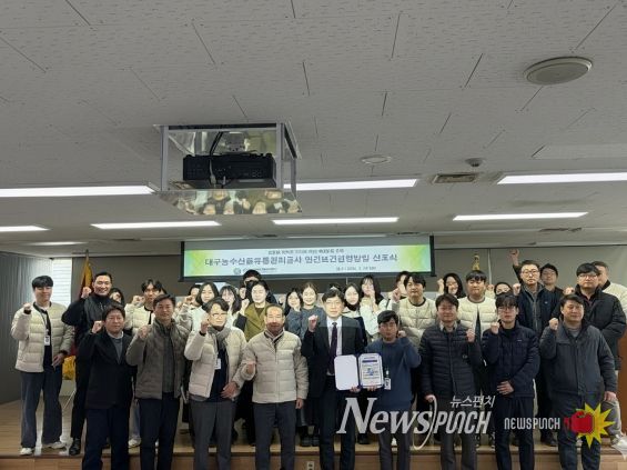 뉴스펀치 조평훈 기자 | 대구농수산물유통관리공사가 2026년을 안전 경영의 전환점으로 삼고, 노사가 하나 되어 ‘재해 없는 도매시장’을 위한 힘찬 발걸음을 내디뎠다.