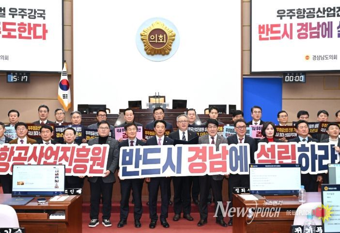 뉴스펀치 박세훈 기자 | 경상남도의회는 28일 본회의 종료 후 본회의장에서 “우주항공산업 진흥을 위한 우주항공산업진흥원 경남 설립 촉구 성명서”를 발표하고, 우주항공산업을 우리나라 미래 첨단전략산업으로 육성하기 위해서는 우주항공산업진흥원이 산업집적지인 경남에 반드시 설립돼야 한다며 정부와 국회에 강력히 촉구했다.