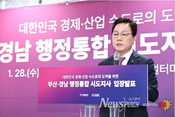 뉴스펀치 박세훈 기자 | 경상남도와 부산광역시는 28일 오전 부산항 신항 동원글로벌터미널에서 ‘경남‧부산 행정통합 공동 입장문’을 발표하고, 진정한 지방시대 구현을 위한 정부의 전향적인 태도 변화와 파격적인 자치권 이양을 촉구했다.