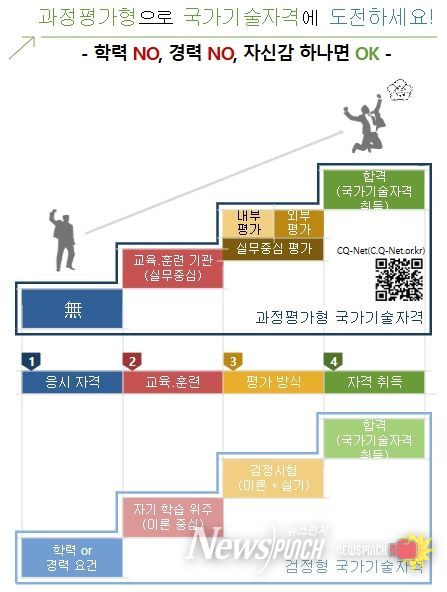 또한, 교육·훈련을 통해 실무 역량을 키워나가는 만큼 별도의 응시자격을 먼저 요구하지 않아 경력이 없는 사람이나 비전공자도 산업기사 이상 자격에 도전할 수 있다. 과정평가형 국가기술자격을 취득하기 위해서는 직업계고, 대학, 폴리텍 등 교육기관에서 개설되는 과정에 참여하거나, 직업훈련기관에서 국민내일배움카드로 교육·훈련을 신청하여 수강할 수 있다.