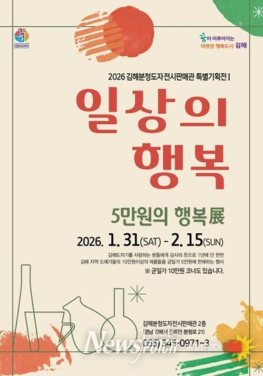 뉴스펀치 박세훈 기자 | 김해시는 오는 31일부터 2월 15일까지 김해분청도자전시판매관에서 ‘일상의 행복, 5만원 행복展’을 개최한다.