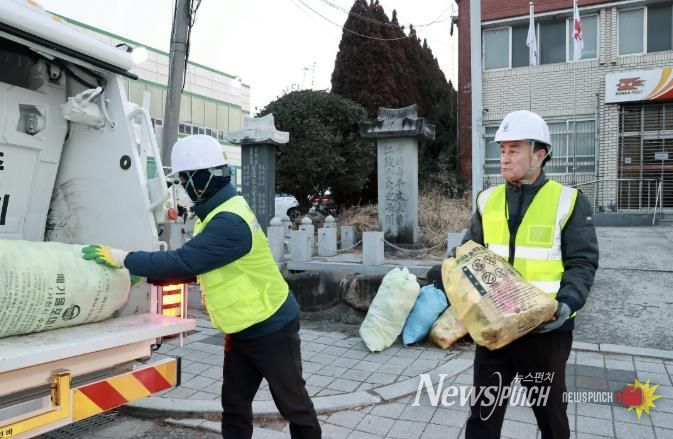 뉴스펀치 박세훈 기자 | 박동식 사천시장이 29일 새해를 맞아 환경공무직과 함께 생활폐기물 수거 현장에 참여하며 일일 환경미화원으로 현장행보에 나섰다.