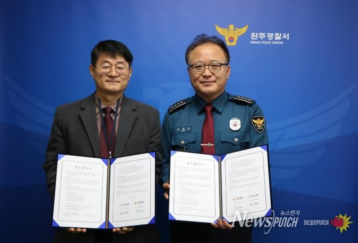 뉴스펀치 최영남 기자 | 완주시니어클럽과 완주경찰서가 노인일자리사업 ‘시니어 치안지킴이’ 운영을 위한 업무협약을 체결했다.