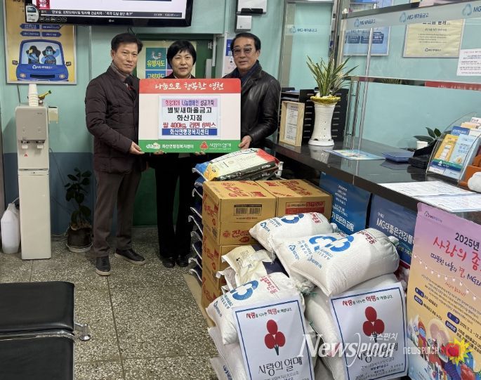 뉴스펀치 박세훈 기자 | 영천 별빛새마을금고 화산지점은 지난 28일 지역 내 어려운 이웃을 돕기 위해 쌀 400kg과 라면 6박스를 화산면에 기탁했다.