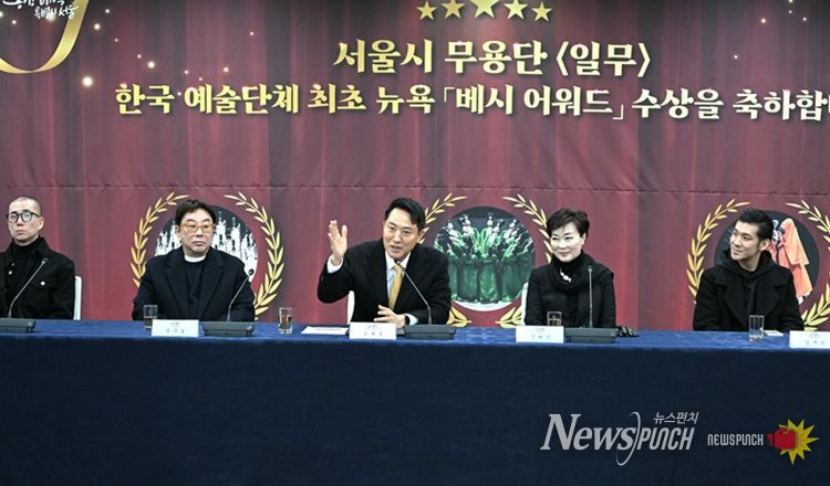 뉴스펀치 박상훈 기자 | 오세훈 서울시장은 문화예술계 인사들과 29일 12시, 서울시청 간담회장1에서 종묘제례악을 재해석한 ‘일무’로 2026년 ‘베시 어워드’에서 최우수 안무가·창작자상을 수상한 서울시무용단을 만나 축하 인사를 전했다.