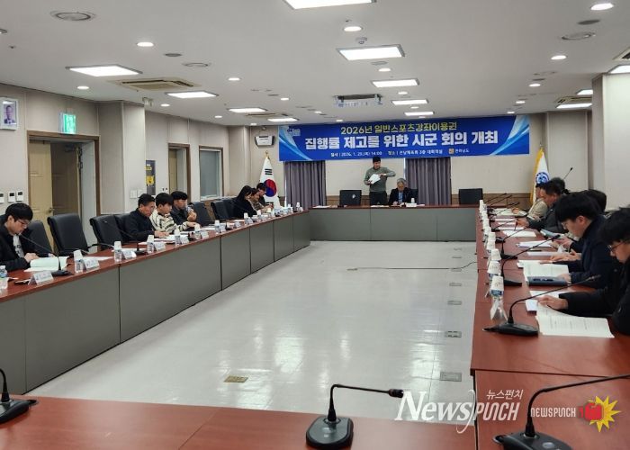 뉴스펀치 김용희 기자 | 전라남도는 29일 전남도체육회 대회의실에서 도, 시군, 체육 관계자 등이 참석한 가운데 2026 일반스포츠강좌이용권 시군 담당 회의를 개최, 사업의 효율적 추진과 집행률 제고를 위한 다양한 방안을 논의했다.