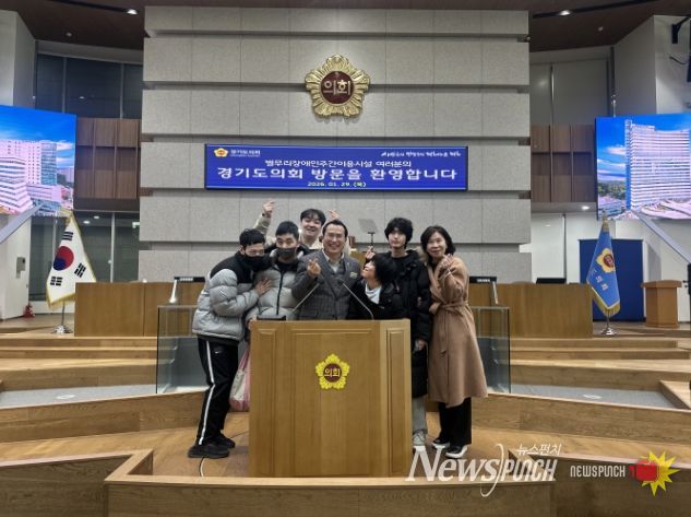 뉴스펀치 박상훈 기자 | 경기도의회 농정해양위원회 이오수 의원(국민의힘, 수원9)은 29일 경기도의회에서 진행된 ‘경기마루 견학’에 참석해 광교종합사회복지관 부설 별무리장애인주간이용시설 이용자와 원장, 선생님 등 시설 관계자들과 뜻깊은 시간을 가졌다.