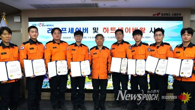 뉴스펀치 박세훈 기자 | 경북소방본부는 지난 29일 소방본부 7층 작전회의실에서 위급한 재난·사고 현장에서 신속하고 헌신적인 대응으로 소중한 생명을 지켜낸 구조대원과 구급대원의 공로를 기리기 위해 라이프세이버 및 하트세이버왕 수여식을 개최했다.