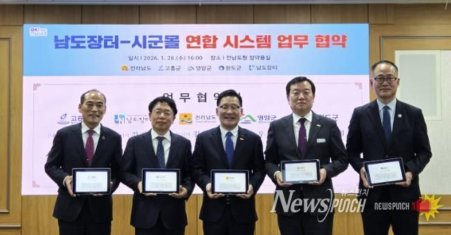 뉴스펀치 김용희 기자 | 완도군은 지난 28일 전남도청 정약용실에서 남도장터, 고흥군, 영암군과 함께 ‘남도 장터-시군 몰 연합 시스템 업무 협약’을 체결했다.