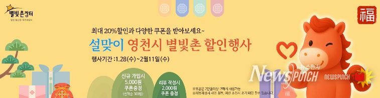 뉴스펀치 박세훈 기자 | 영천시는 지역 농특산물 온라인 쇼핑몰 ‘별빛촌장터’에서 병오년 설을 맞아 2월 11일까지 특별 할인행사를 진행한다고 밝혔다.