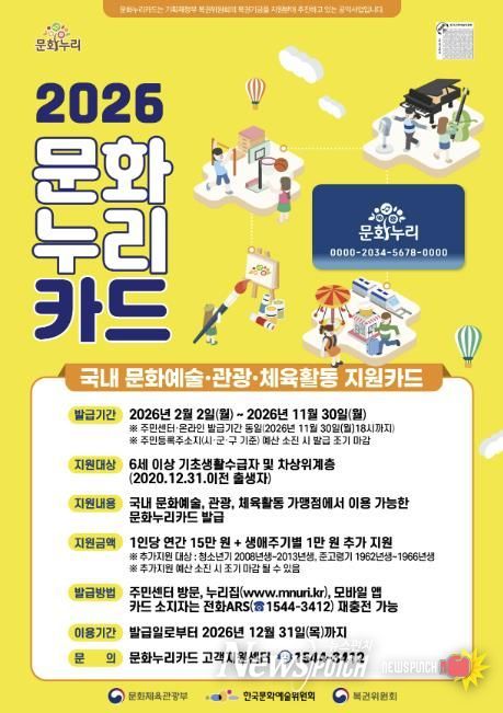 아울러 2025년도 문화누리카드를 3만 원 이상 사용하고 2026년에도 수급자격을 유지하는 경우, 별도의 신청 절차 없이 보유한 카드에 지원금이 자동 충전되어 사용 가능하다.