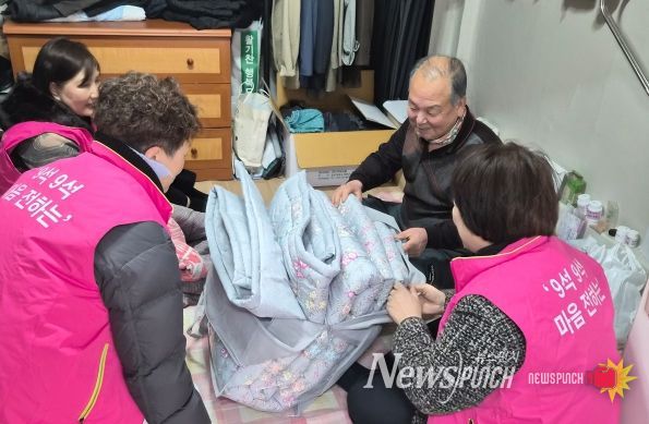 뉴스펀치 조평훈 기자 | 지난 28일 연일 이어지는 한파 속에서 대구 남구 대명9동 이승사자단(지역사회보장협의체)은 쪽방에 거주하는 취약계층을 방문해 겨울 이불 20세트를 전달하고 건강과 안부를 살폈다.