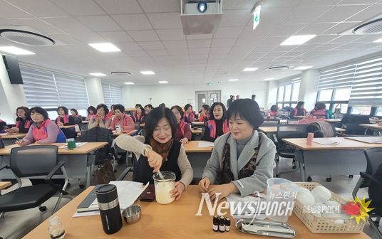 이어 우수생활개선회원 표창 시상, 2025년 활동실적 및 결산보고, 2026년 사업계획 및 예산 사용계획으로 사업설명을 했다. 또 저속노화에 관련한 섬유아세포, 콜라겐 형성에 좋은 음식과 향기라는 주제로 이론과 실습을 병행하면서 연시총회를 마무리했다.