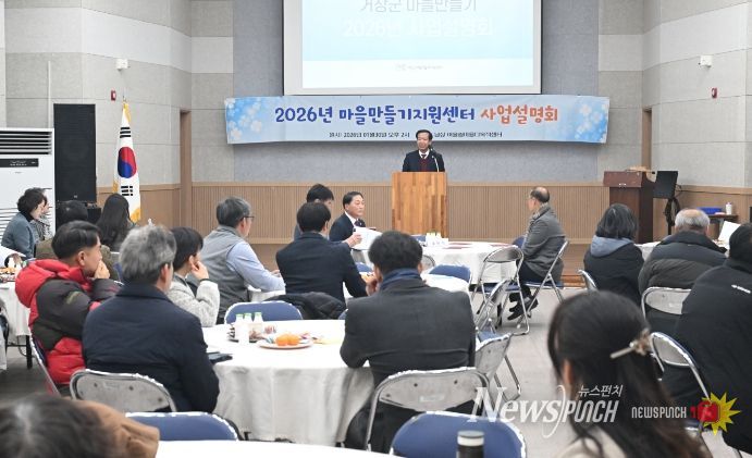 뉴스펀치 박세훈 기자 | 거창군 마을만들기지원센터 지난 30일 남상면 어울림다목적회관에서 주민주도형 마을공동체 활성화와 지속가능한 농촌 발전을 도모하기 위해 읍·면 주민과 마을활동가, 완료지구 관계자 등을 대상으로 '2026년 거창군 마을만들기 사업설명회'를 개최했다.
