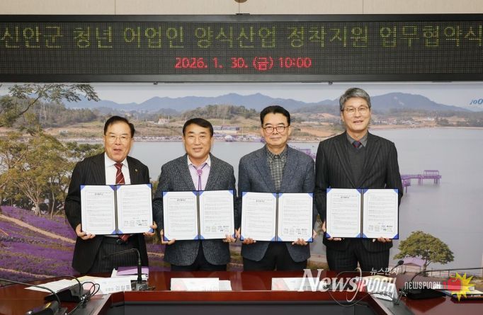 뉴스펀치 최영남 기자 | 신안군은 1월 30일 군청에서 유휴수면을 체계적으로 활용하고 청년·귀어인·신안해양과학고등학교(약칭:신해고) 졸업(예정)자의 양식업 참여 기회를 확대하기 위해 ‘신안군 청년 어업인 양식산업 정착지원 업무협약’을 체결했다.