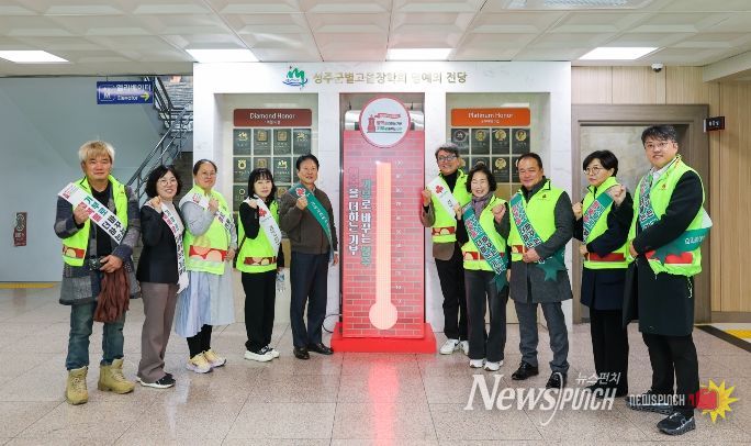 뉴스펀치 박세훈 기자 | 성주군 성주읍에 위치한 영빈토건·두성건설에서 성금 500만원을 기탁하며 희망2026나눔캠페인 마지막 날 성주군 사랑의 온도탑을 뜨겁게 달궜다.