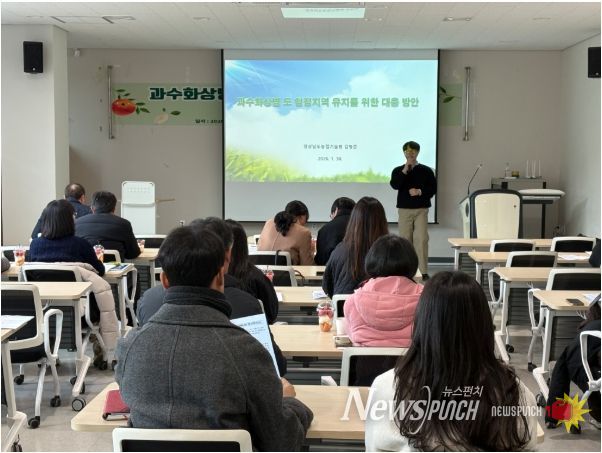 뉴스펀치 박세훈 기자 | 경상남도농업기술원은 과수화상병의 도내 유입을 사전에 차단하기 위해 30일 진주시농업기술센터에서 도내 전 시군 담당자를 대상으로 과수화상병 대응 역량 강화 교육을 실시했다고 밝혔다.