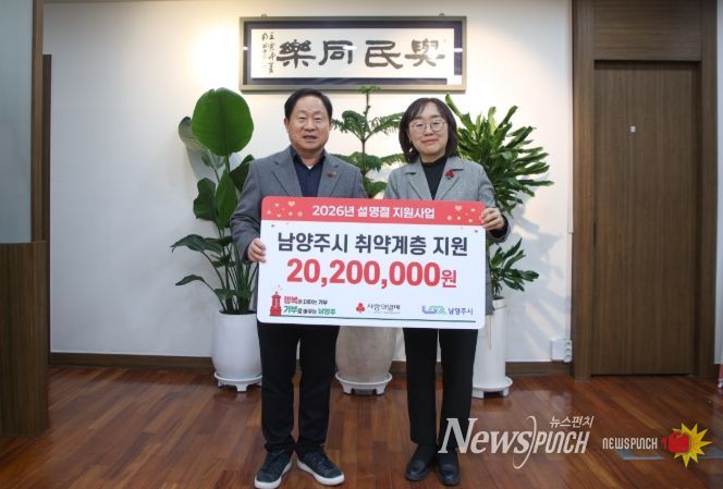 뉴스펀치 박상훈 기자 | 남양주시는 30일 경기북부사회복지공동모금회로부터 ‘2026년 설명절 지원사업’ 배분금 2,020만 원을 전달받았다고 밝혔다.