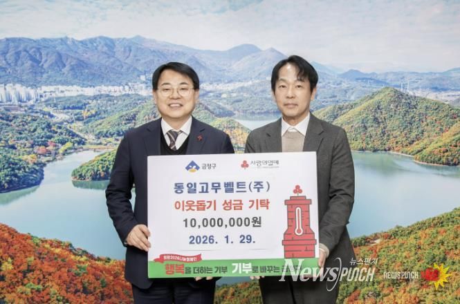 뉴스펀치 김윤걸 기자 | 부산 금정구는 지난 29일 동일고무벨트㈜에서 경제적으로 어려운 지역 청소년들을 위한 ‘금정 희망의 사다리 운동 사업’에 이웃돕기성금 1,000만원을 기탁했다고 밝혔다.