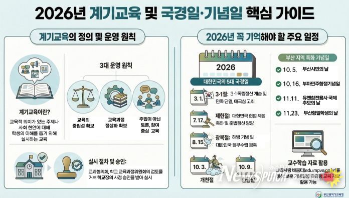 이번 홍보 강화는 시기별로 교육적 의미가 있는 주제를 다루는 ‘계기교육’의 현장 활용도를 높여, 학생들이 부산의 주요 기념일을 이해하고 그 역사적 의미를 자연스럽게 인식할 수 있도록 하기 위한 것이다.